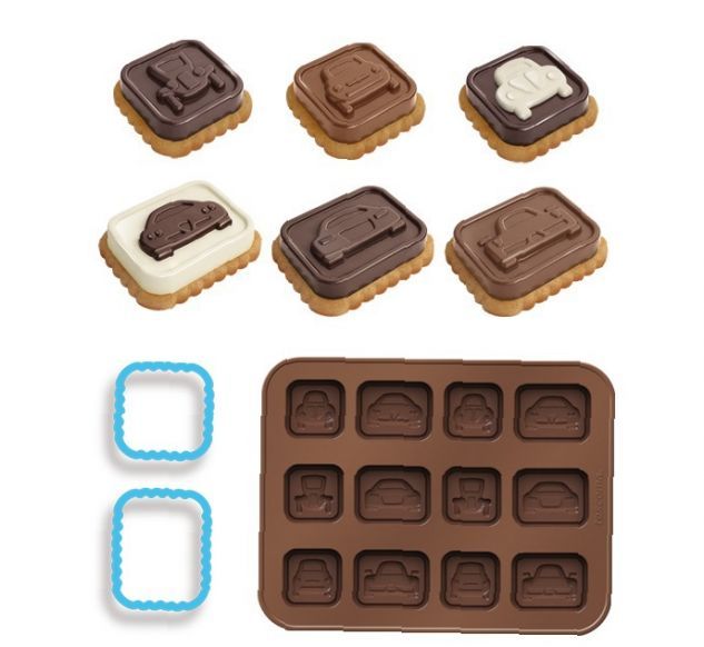 Их сейчас делают и из пищевого пластика и из силикона. Если есть желание, можно получившиеся медальки поместить на печенье приготовленное в такой же форме или же другой, так будет даже интереснее. Между печеньем и шоколадом можно положить слой джема или варенья, а в сам шоколад можно положить орешки