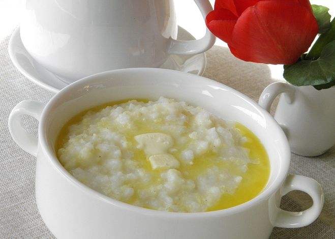 Итак, для начала крупу тщательно промываем и при необходимости ошпариваем кипятком (пшено). Затем рис и пшено смешиваем в кастрюле, заливаем молоком (можно его немного подогреть, если холодное), добавляем сахар, соль (обязательно для равновесия вкуса) и сливочное масло, а затем ставим в неразогретую духовку. Духовку разогреваем до 200°С и оставляем кашу в духовке на один час.