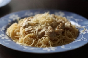 8.Спагетти соединяем с соусом и подаем к столу.