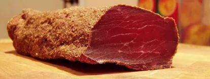 В давние времена использовалась дичь, например - вырезка мяса косули, но в наше время используют говядину. Ее то и подвергают вялению - засаливают свежее мясо, которое потом попадает под пресс (нужно удалить излишки жидкости), перед этим на него укладывают солевой слой.