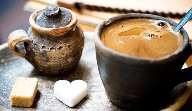 Для этого напитка используем только специальные кофейные чашечки. Возьмем чайную ложку кофе и положим в турку, добавляем по вкусу сахарного песка, корица и другие пряности. Наполняем турку свежей водой по объёму кофейной чашечки.