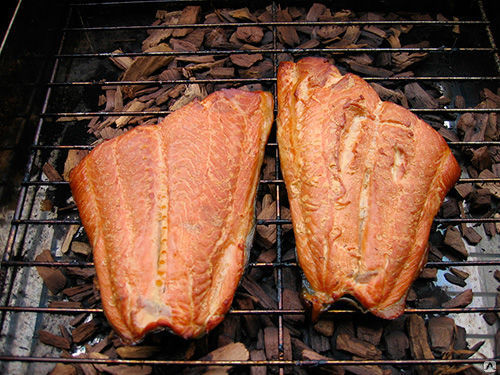 Различают три вида копчения: горячее, полугорячее и холодное. Но основой все-таки остается процесс тления мелких стружек, опилок и древесной щепы. Дым от этого тления обволакивает еду, готовит ее и придает золотистый оттенок.
