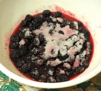Более трудоёмкий способ хранения ежевики без сахара заключается в том, что часть ежевики нужно отжать на сок и заливать целые ягоды в банках не кипящей водой, а кипящим соком. Такую заготовку, открыв зимой можно использовать для варки компотов только из одной ежевики, но можно и в смеси с другими ягодами и фруктами.