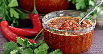 Иногда такую заготовку относят к аджикам, но это не совсем так. Эта острая довольно приправа и очень востребована зимой, поскольку возбуждает аппетит, очень ароматная, и подходит к мясу, грибам, макаронам, если конечно "макаронник" любитель остренького.