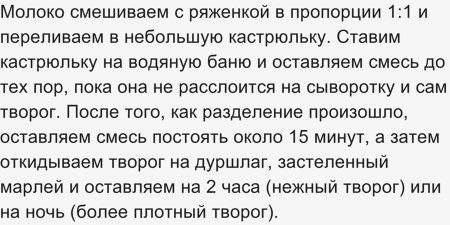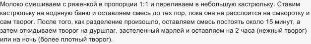 2) Творог, приготовленный методом нагрева на плите ряженки. Делается примерно также, как и обычный творог из молока.