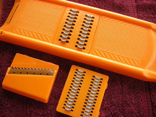 . Такие терки не очень надежны, зависит от производителя, могу посоветовать - покупайте там, где можно попробовать попользоваться, например на рынках часто продают такие и показывают как эти ножи работают.