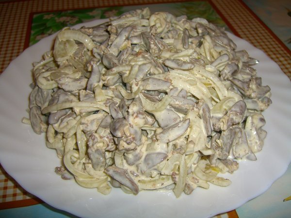 Все ингредиенты смешать и заправить майонезом или сметаной.