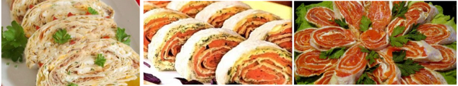 Из тонкого армянского лаваша можно приготовить вкусные и красивые праздничные закуски. Например, лаваш с печенью трески или рулет из лаваша с начинкой из красной рыбы.