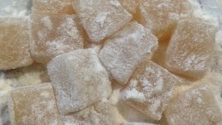 Когда рахат-лукум застынет, его режут кубиками и со всех сторон посыпают оставшейся пудрой из сахара.
