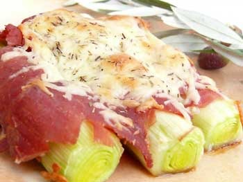 Для приготовления этого оригинального и вместе с тем несложного в приготовлении блюда понадобится : 200 грамм лука порея, 300 грамм ветчины, можно от свиного окорока, можно от лопаточной части. Масло сливочное 100 грамм. Из приправ - перчик чёрный, свежая петрушка и укропчик. Больше приправ не нужно, ветчина сама по себе в процессе изготовления очень ароматным продуктом получается.Соль тоже не нужна, ветчина - это часть просоленного окорока, (или лопатки).