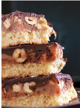 Сверху в карамель вдавливаем фундук, предварительно очищенный.
