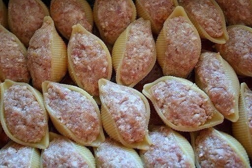 Макароны нафаршировать мясным фаршем с луком.