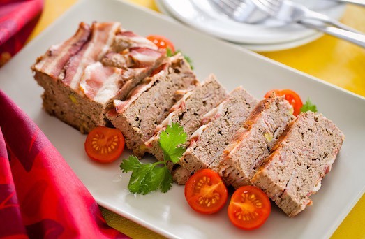 Теперь берём прямоугольную форму для запекания (по форме как для буханки хлеба), смазываем её растительным маслом. Полосками бекона выстилаем дно и стенки формы, стараемся класть их немножко внахлёст. Полоски бекона должны закрыть всё днище и стеночки формы.