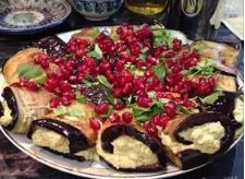 Остановлюсь на закусках - их невообразимое количество, выделю бадриджани, наиболее употребительную в этой стране - пластину баклажана обжаривают и скручивают, поместив внутрь начинку из ореха, обязательно положив сверху искрящиеся рубиновым цветом гранитовые зернышки.