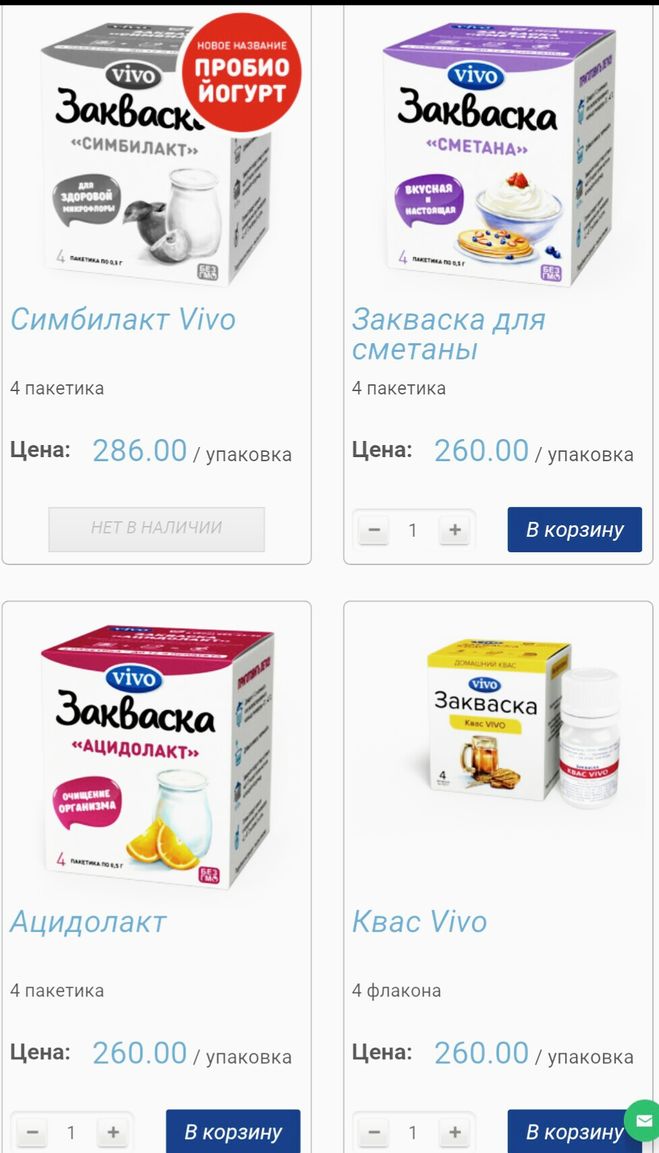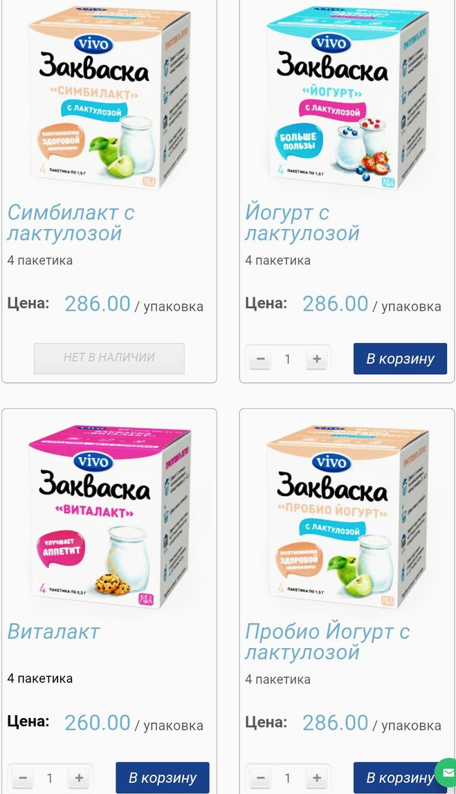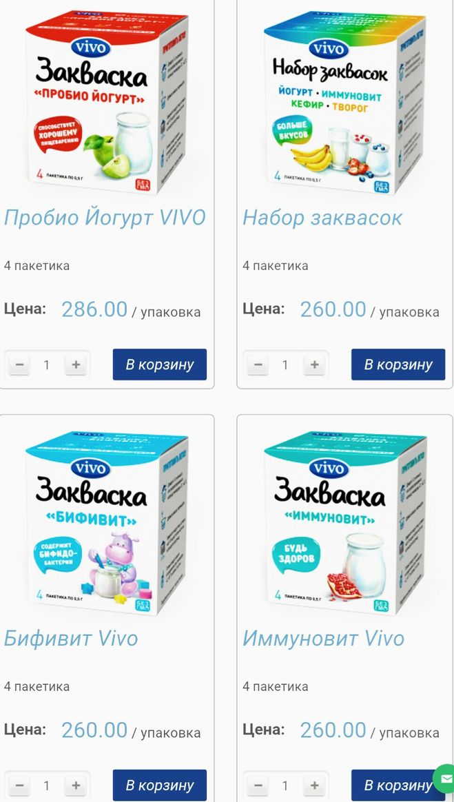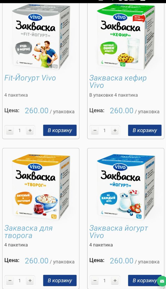Я отдаю предпочтение сухой Эвиталии. На мой взгляд, кисло-молочный продукт из нее вкуснее, чем из Наринэ, и чуть дешевле, чем Виво. Хотя у последней марки довольно широкий ассортимент. Вот, смотрите: