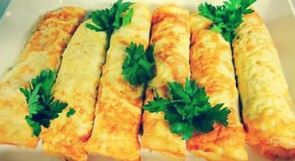- обжарьте с двух сторон до готовности - минуты по две. Снимите, кладите начинку, поливайте соусом и сделайте "рулетик", который украсьте зеленью.