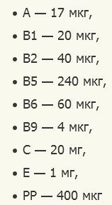 Калорийность ежевики - не более 40 Ккал на 100 грамм ягоды. Не желательно есть более, чем 100-150 грамм в день, поскольку она дает небольшой, но все же существенный эффект послабления. По витаминам можно выделить такое содержание: