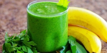 кефирчик - 1 стакан; огурчик свежий, молоденький; стебель сельдерея; банан - 0,5 фрукта; имбирь и немного корицы.