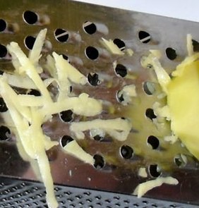 А натирается на терке просто: картофель очищаетсяот кодуру и натирается. Некоторые для этих целей используют кухонный комбайн. А вот пропускать для драников картофель через мясорубку не советую.