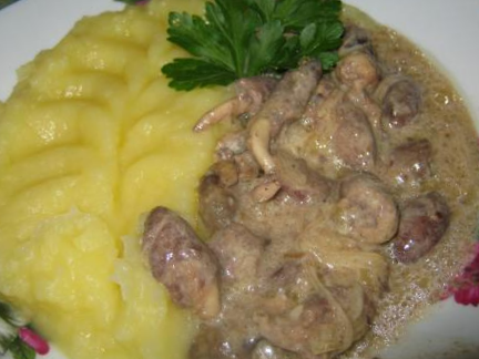 Вместо сметаны можно добавить томат 2-4 ложки или густой томатный сок. Если сметаны и томата нет, то можно к сердечкам добавить зимний салат "Лечо".