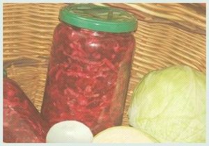 Для приготовления такого салата понадобится уже сваренной с уксусом, (чтобы не потеряла свой яркий цвет), свеклы - 1 кг, белокочанной капусты, поздних сортов, - 1 кг, спелых помидор 200 грамм, перцев болгарских сладких, непременно красного цвета - 2 штуки крупных, 100 грамм репчатого лука, головок,головка чеснока, уксуса яблочного 9% - 70 мл, соли- 30 грамм, сахара - 50 грамм. Приправы по выбору хозяйки - перцы, душистый и горький, гвоздика, лавровый лист, корень хрена.