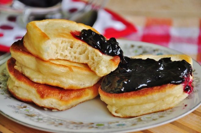 Теплая вода + дрожжи + соль + сахар + мука = перемешать, дать тесту подняться и можно выпекать на растительном масле. Такие оладьи можно есть с вареньем или сгущенкой, а так же с борщом, котлетами, салатами и др. блюдами. Главное сахара класть немного, на 0,5 литра жидкости 1-3 ложки .