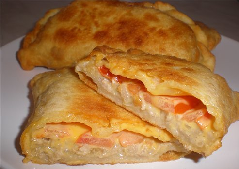 Использовать для начинки нужно помидоры не в чистом виде, а с добавлением дополнительных ингредиентов. Поскольку помидор очень сочный, и сок во время обжаривания будет вытекать из чебурека, испортив при этом не только вкус, но и внешний вид выпечки. Предлагаю добавить к помидорам брынзу, сладкий перец и петрушку, букет вкусов получается, просто незабываем. Тесто для такой начинки подойдет дрожжевое, но подходить ему не нужно, его можно будет выпекать сразу после приготовления теста. Помидоры для начинки лучше выбирать небольшие по размеру, к тому же твердых сортов. У них меньше сока, соответственно они лучше пропекутся, и не будут затем истекать соком после обжаривания.