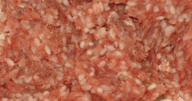 Фарш можно брать из любого мяса или птицы. Можно купить готовый или приготовить самим. Только нужно учитывать, что фарш не должен быть слишком мелким, иначе он будет жидким.