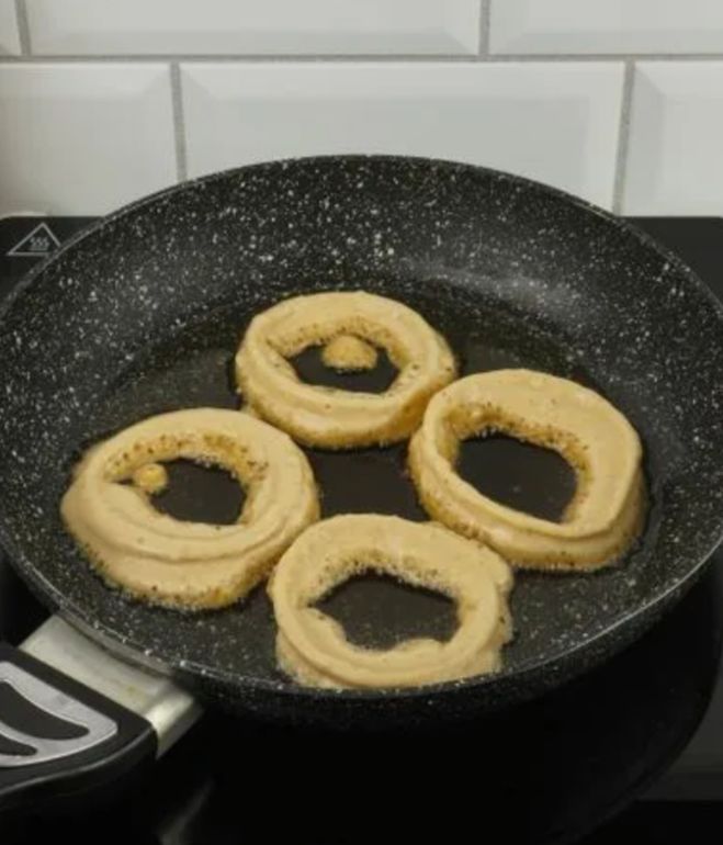 - кольца не хрустят - масло недостаточно раскалилось или много колец на сковородке;