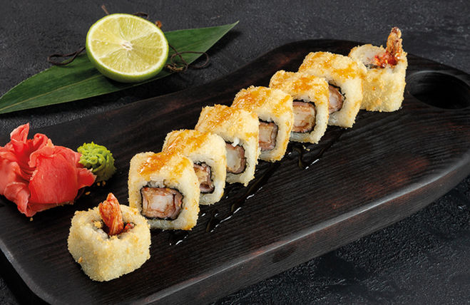 Во фритюре в сухарной панировке, в свою очередь, обжаривают роллы.