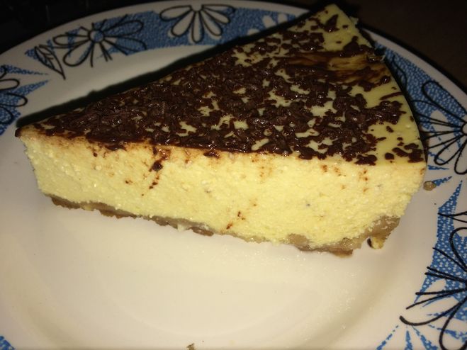 - Достать чашу из холодильника, вылить начинку на основу из печенья и поставить в мультиварку. Выпекать чизкейк на режиме "Выпечка" 65 минут. После завершения не открывать крышку час, дать возможность чизкейку остыть, чтобы он не опал. Украсить можно шоколадной крошкой.