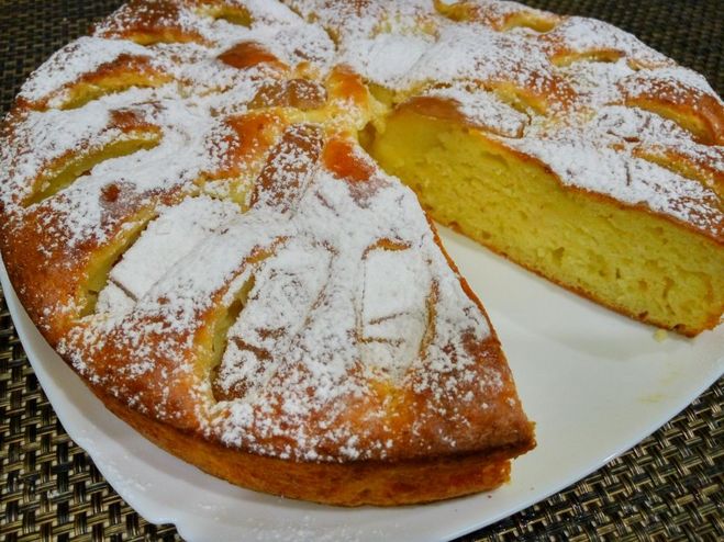 Для приготовления шарлотки с творогом потребуются следующие ингредиенты в количестве: 1 стакан творога; 1 стакан муки пшеничной высшего сорта; 150 грамм сахара-песка; 1/2 чайной ложечки ванильного сахара (по желанию); 1 чайная ложечка разрыхлителя теста; 4 куриных яйца; 50 грамм сливочного масла; 3-4 ложки сметаны; сахарная пудра для присыпки; 3-4 спелых кисло-сладких яблока; соль берётся по вкусу.
