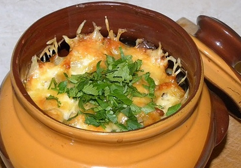 Подавать можно прямо в горшочках. А для красоты , готовое блюдо посыпать свежей зеленью.