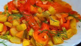 Одно из диетических рецептов рагу - это рагу из кабачков с овощами. Понадобится 1 килограмм молодых кабачков, 2 сладких болгарских перца, 1 головка лука, 3 средних помидора, 5 столовых ложек растительного масла, соль, перец и зелень по вкусу.