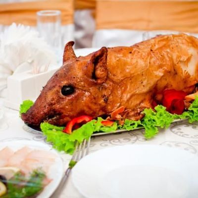 Я хочу вам рассказать рецепт поросёнка праздничного.