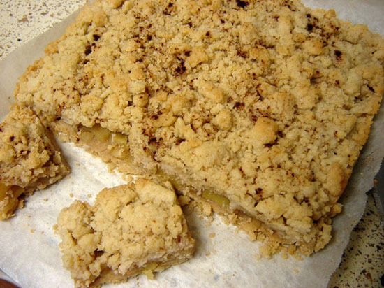 Я беру по стакану муки, манки и сахара. Перемешиваю. Добавляю 2 чайные ложки разрыхлителя, 1 чайную ложку разрыхлителя. Перемешиваю. Добавляю 200 грамм мягкого сливочного масла. Получается тесто как крошка. Яблоки нарезаю мелко, можно натереть. Перемешиваю их с корицей. Противень смазываю растительным масло, высыпаю 1/3 теста-крошки, на него выкладываю начинку из яблок, сверху оставшееся тесто. Выпекаю минут 50.