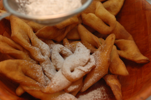 Жарить в растительном масле предпочтительнее ещё и потому, что хворост не черствеет и растительное масло не застывает через некоторое время, как животные жиры. Не рекомендую и оливковое масло употреблять.Оливковое масло не любит жарки, все витамины в нём при кипении исчезают.Это масло хорошо употреблять в салатах, оно полезно сырое.