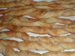 Выкладываем тесто на разделочную доску, раскатываем и нарезаем в виде палочек по длине десять сантиметров и по толщине как карандаш.
