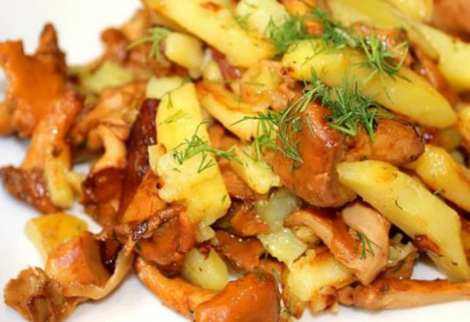 Рецептов много, но я напишу свой любимый. Я с детства обожаю жареные лисички, поэтому даю рецепт салата именно с этими грибами: