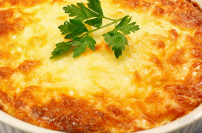 Но за 10 минут до готовности посыпать блюдо предварительно натертым сыром на терке (хватает 150-200 граммов сыра). И подождать при всех ароматах еще на выпечку в духовку.