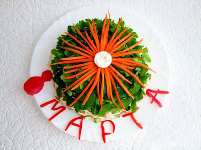 Поэтому, на праздничный стол восьмого марта хочется подать всё очень красивое, оригинальное и стильно оформленное. Даже салаты на восьмое марта превращаются в нечто невероятное и божественно прекрасное.