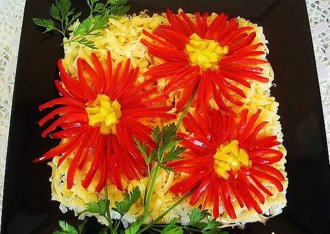 Попробуйте также вот так оформить блюдо на восьмое марта: