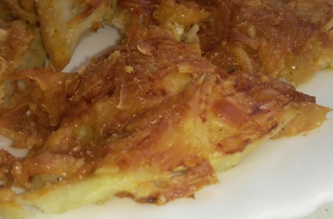 Потом все закройте натертым сыром, перемешанным с сухарями.
