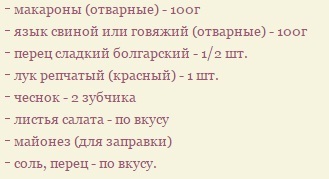 Еще один рецепт салата с языком, макаронами, сладким перцем