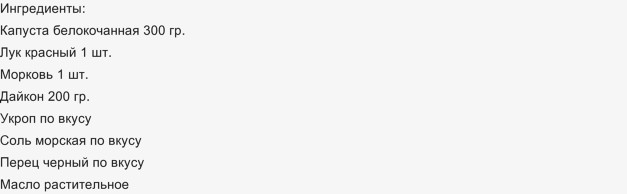 Очень рекомендую попробовать приготовить отменный салат из дайкона, моркови, белокачанной капусты, красного лука. Если Вам не нравится морковь, ее можно исключить, но чем больше компонентов в салате, тем лучше его вкусовые качества.