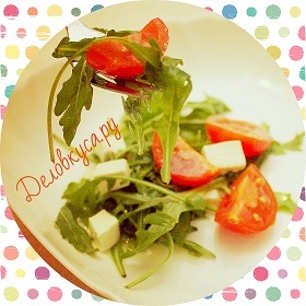 Рукколу промыть, высушить. Томаты черри порезать на две половинки. Моцареллу нарезать кубиками. Если вы берете обычные томаты, то их как и моцареллу лучше порезать кружками, выкладывая  в тарелку , чередуя друг друга по кругу.