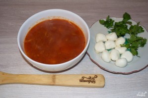 Вряд ли мы в наших супермаркетах встретим классическую моцареллу, да и дорогой этот сыр. один из основных сыров итальянской кухни.Но моцарелла из коровьего молока и дешевле, и вкусом не уступает. Поэтому, для того, что бы при готовить Томатный суп с моцареллой покупаем шарик этого сыра.