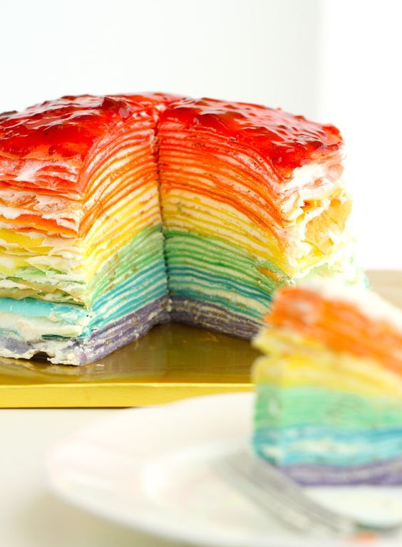 Торт "Радуга" с разноцветными радужными блинами как сделать?
