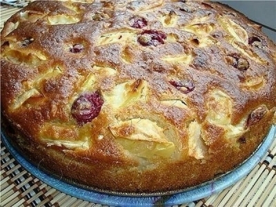 На подготовленную форму (прогреть, смазать), выкладываем часть теста, затем яблоки и наверх выкладываем оставшуюся часть. Выпекаем в духовке при температуре 180 градусов примерно минут 40-45.