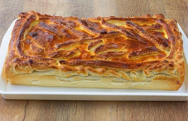 Раскатываем тесто в виде прямоугольника, Кладем на противень, посреди кладем начинку по желанию и защипываем края кулебяки. Выпекаем в духовке при температуре 190 град. примерно 45-50 минут.
